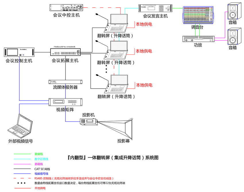 9、發(fā)言系統(tǒng)通過(guò)手拉手連接,通過(guò)專用音頻線連接至發(fā)言會(huì)議主機(jī)。