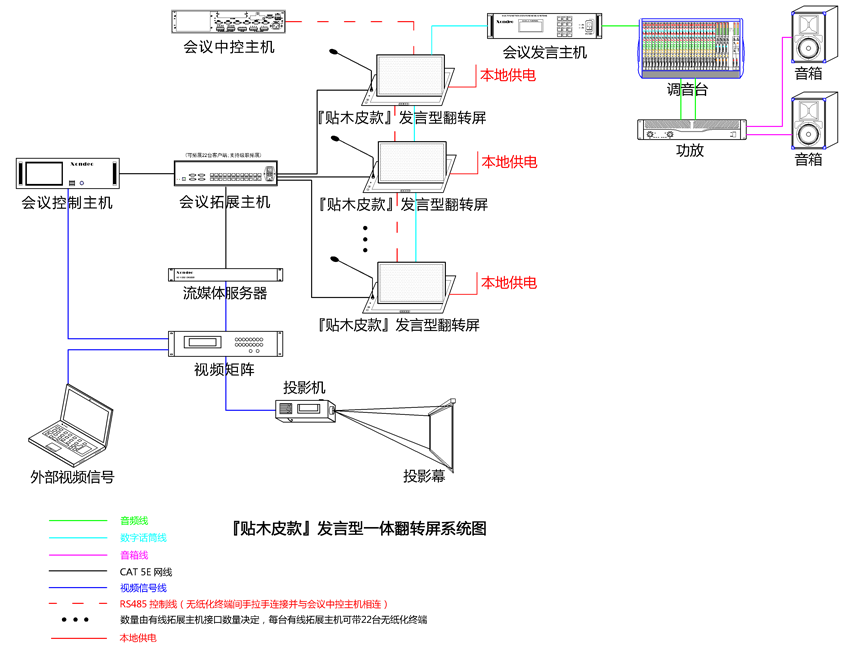 9、發(fā)言系統(tǒng)通過(guò)手拉手連接,通過(guò)專用音頻線連接至發(fā)言會(huì)議主機(jī)