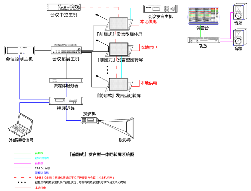 9、發(fā)言系統(tǒng)通過(guò)手拉手連接,通過(guò)專用音頻線連接至發(fā)言會(huì)議主機(jī)。