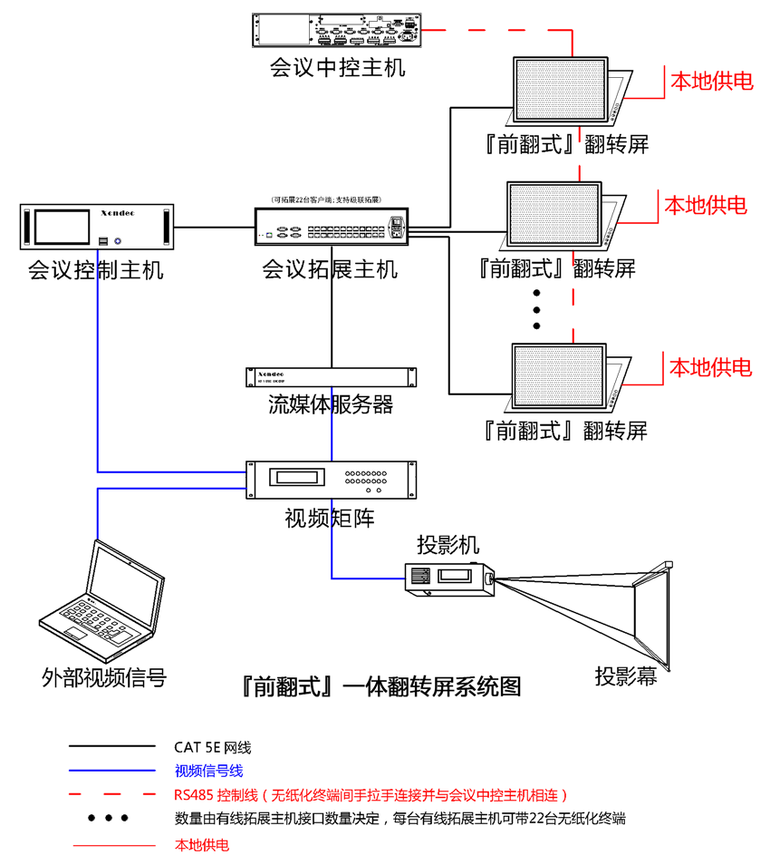 3、系統(tǒng)可以擴展第三方網(wǎng)絡(luò)中控,從而實現(xiàn)任意會議終端(經(jīng)過授權(quán))隨時對周邊設(shè)備進行控制;第三方中控可通過RF/RS 485協(xié)議對翻轉(zhuǎn)進行統(tǒng)一控制。